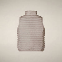 A mini-me version of mom’s favorite style, the Ava vest features a shiny quilted design paired with a sleek stand-up collar. Finished with Lycra trims at the hem and armholes, it includes a central metallic zipper with a custom orange zipper pull and two side pockets with hidden zippers. Signature features like the round logo on the side and animal-free PLUMTECH® padding complete the design.